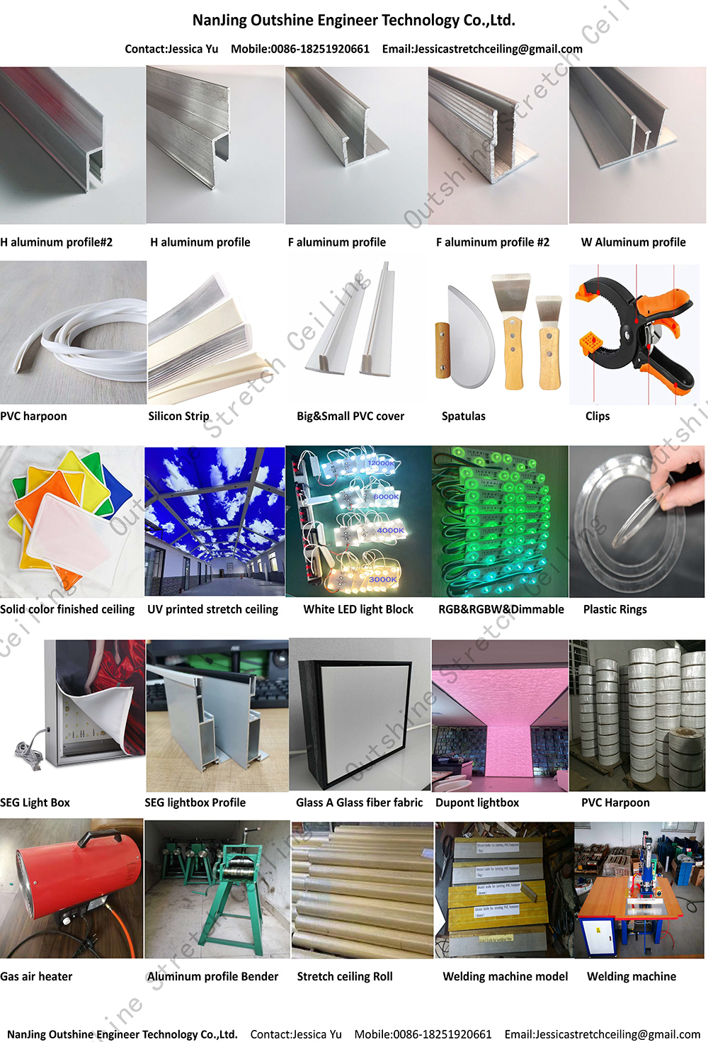 عادةً ما يكون سقف PVC تمتد بالفعل مع Harppon PVC ، وملف تعريف الألومنيوم وغطاء PVC يمكنك اختياره أو لا.